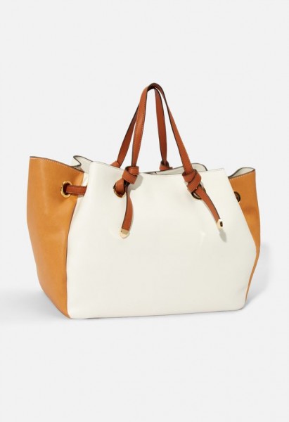 L. Knotted Handle Colorblock Tote - White/Tan