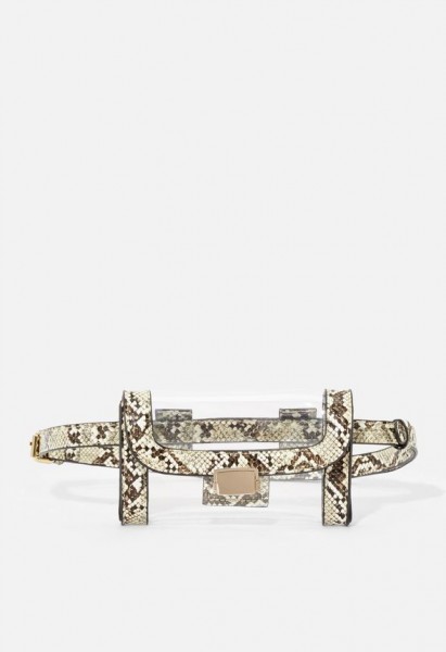 Material: PVC/Faux Leather Size: 7”L x 4”H x 1”D Hardware color: Gold Belt Strap Measurements : 31" - 53" Pockets: N/A Closure: Push Lock